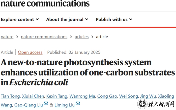 【林大网讯】(文/生命与环境科学学院)近日,生物学科刘高强教授团队在微生物合成代谢研究领域取得突破性进展,团队在模式微生物大肠杆菌(非光合微生物)中构建了人工光合系统,实现了“负碳”生物智造的突破。研究成果以“A new-to-nature photosynthesis system enhances utilization of one-carbon substrates in Escherichia coli”为题,发表于Nature子刊Nature Communications,这是我校首次在该期刊上发表研究成果。中南林业科技大学为第一完成单位、生物学2019级博士生童天同学为第一作者、刘高强教授为通讯作者;合作单位江南大学为第二完成单位,刘立明教授为该单位通讯作者。该成果为童天的博士学位论文主体内容。